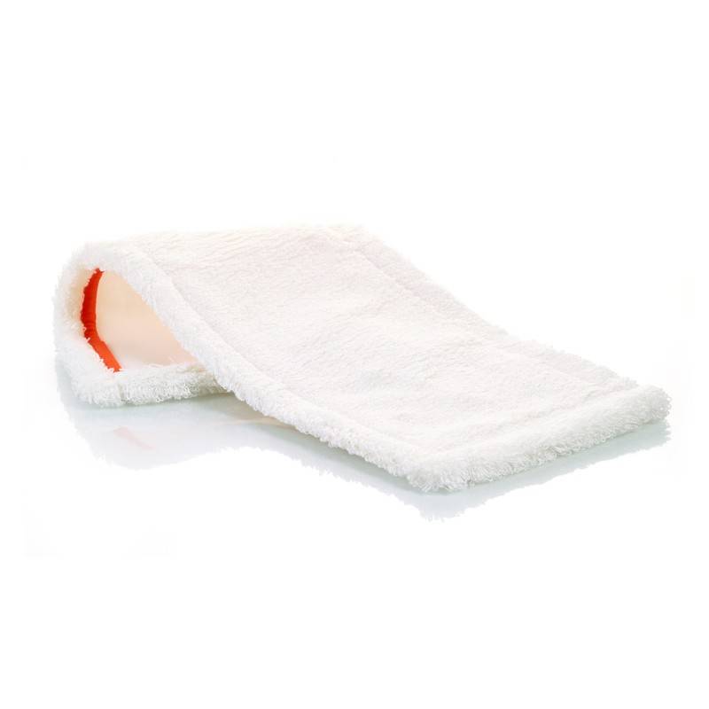 - Balayage humide : les revêtements de sol lisses (p. ex. stratifié ou parquet) qui ne doivent pas être lavés avec de la microfibre peuvent sans aucun problème être nettoyés à l’aide de la fibre pour sol blanche humidifiée.