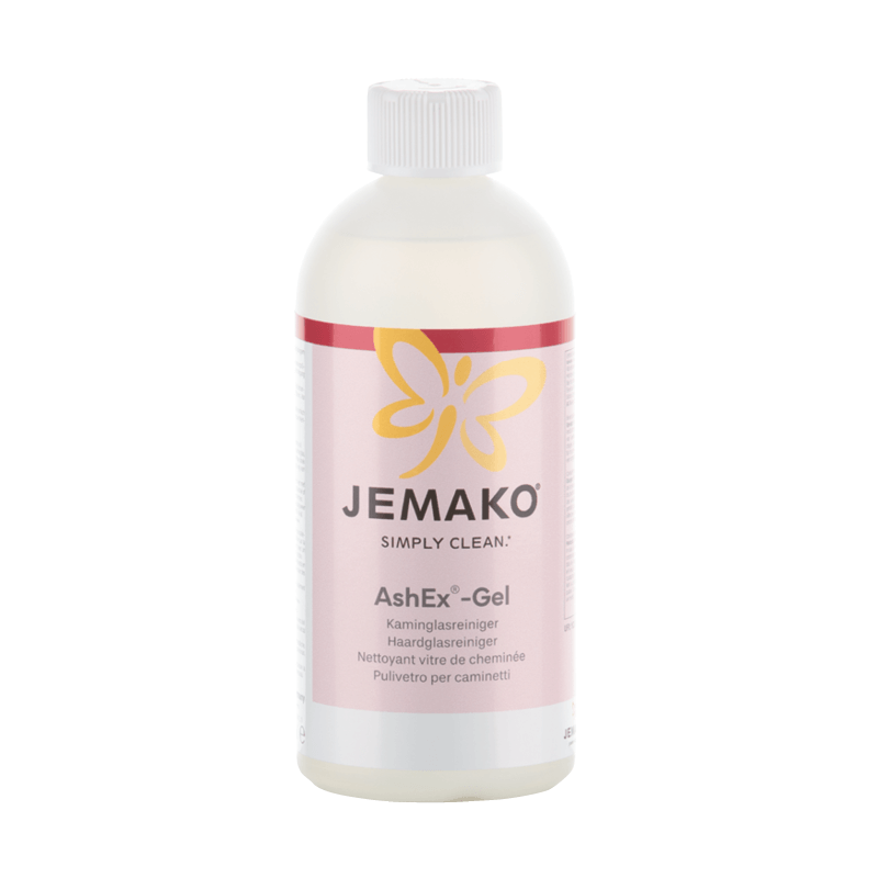 AshEx®-Gel sparsam und gleichmässig auf die kalte Kaminglasscheibe sprühen und einige Minuten einwirken lassen, dann das Gel mit einem feuchten AshEx®-Tuch abnehmen. Bei Bedarf Vorgang wiederholen und abschliessend mit ausgewaschenem AshEx®-Tuch nachreinigen. Nur für Kaminglas geeignet; Metallteile, Stein etc. nicht mit AshEx®-Gel behandeln!
