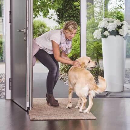 - Je nach Verschmutzungsgrad kann es sich auch anbieten, die Matte einfach auszuschlagen oder abzusaugen. Vor der Wäsche sollte das grundsätzlich passieren, um groben Schmutz und kleine Steinchen zu entfernen. Wir empfehlen ausserdem, die Matte vor dem Waschen mit der speziellen Silikonbürste aus der JEMAKO Promotion-Kollektion von Tierhaaren zu befreien.
