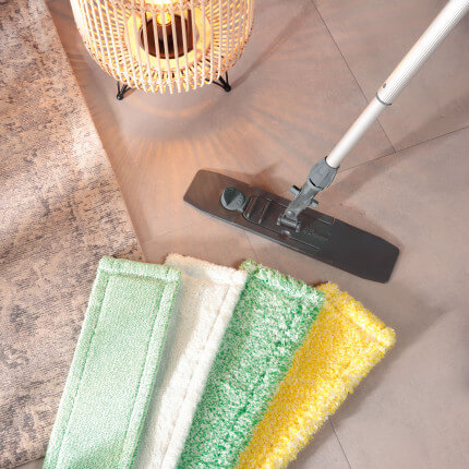 La combinaison parfaite d’un support sol et d’une fibre pour sol pour les sols sensibles à l'eau et l'élimination de la poussière et des cheveux.