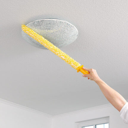Mit unserem biegsamen „Staubschwert“ werden selbst schwer erreichbare Ecken wieder gründlich sauber.