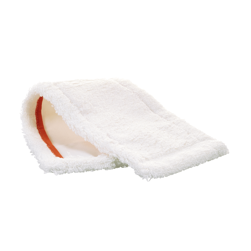 - Balayage humide : les revêtements de sol lisses (p. ex. stratifié ou parquet) qui ne doivent pas être lavés avec de la microfibre peuvent sans aucun problème être nettoyés à l’aide de la fibre pour sol blanche humidifiée.