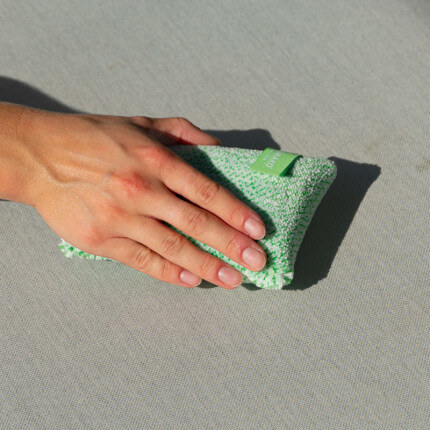 Mit der grünen Faser als praktischem Schwamm können Verschmutzungen aus Textilien schnell und unkompliziert entfernt werden. Zudem kann der Schwamm besonders gut für die Reinigung aller unempfindlichen Oberflächen im Haushalt genutzt werden, wie z. B. zur Reinigung der Fugen des Fliesenspiegels in der Küche und im Badezimmer etc.
