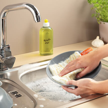 - Das Abspülen von Geschirr, Töpfen, Pfannen, Gläsern und Besteck - in Kombination mit dem Kraft-Gel