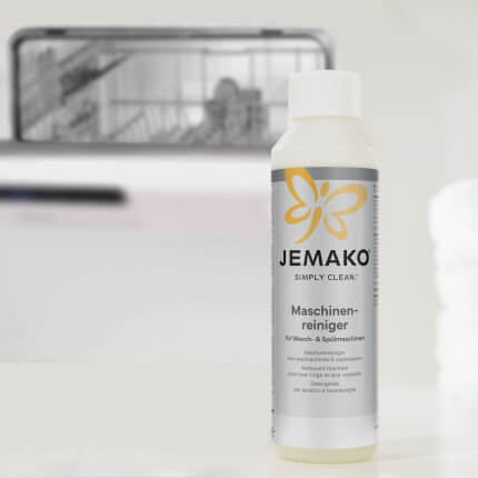 - Impiego in lavatrice: rimuovere il cassetto del detersivo e pulirlo con un po’ di Detergente per lavatrici e lavastoviglie e una fi bra JEMAKO. Quindi sciacquare. Eliminare pelucchi, sassolini ecc. dalla guarnizione di gomma. Pulire con un po’ di Detergente per lavatrici e lavastoviglie la guarnizione e l’interno dell’oblò della lavatrice. Versare il Detergente per lavatrici e lavastoviglie rimasto nel vano principale del cassetto del detersivo e avviare a macchina vuota un lavaggio completo a min. 60 °C. La macchina è utilizzabile subito dopo l’uso. Uso consigliato: ogni 4 – 6 mesi.
