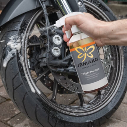 Vaporizzare non diluito sui cerchioni bagnati prima di lavare l’auto. A seconda del grado di sporco, attendere circa 15 minuti. Non lasciare asciugare il prodotto. Quindi lavare i cerchioni con il CleanStick® Plus, 15 cm fibra verde di JEMAKO. Sciacquare con acqua abbondante.