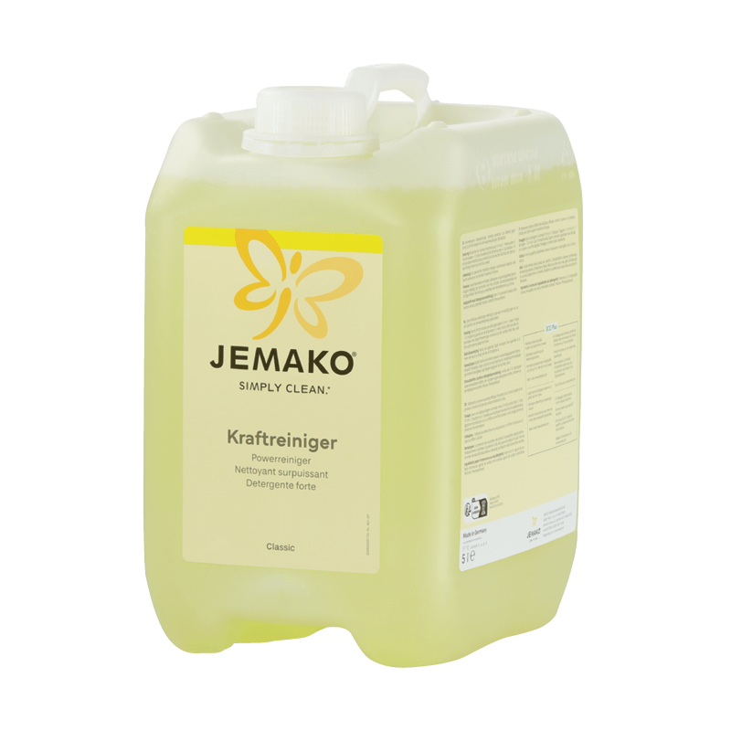 - Kraftreiniger nach Wunsch auf ein Profituch, Spültuch oder eine grüne JEMAKO Faser sprühen und die gewünschte Oberfläche reinigen. Abspülen oder feucht nachwischen - fertig!