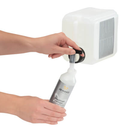 - Anwendung Waschmaschine: Waschmittel-Einspülkammer entnehmen, mit wenig Maschinenreiniger und einer JEMAKO Faser reinigen. Anschliessend abspülen. Aus der Gummidichtung Flusen, Steinchen etc. entfernen. Mit etwas Maschinenreiniger die Dichtung sowie die Innenseite des Bullauges reinigen. Den restlichen Maschinenreiniger in die Hauptkammer des Einspülfachs geben und einen Hauptwaschgang bei mindestens 60 °C ohne Wäsche starten. Nach der Anwendung ist die Maschine sofort wieder einsatzbereit. Empfohlene Anwendung: Alle 4 – 6 Monate.