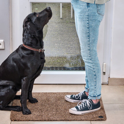 - Je nach Verschmutzungsgrad kann es sich auch anbieten, die Matte einfach auszuschlagen oder abzusaugen. Vor der Wäsche sollte das grundsätzlich passieren, um groben Schmutz und kleine Steinchen zu entfernen. Wir empfehlen ausserdem, die Matte vor dem Waschen mit der speziellen Silikonbürste aus der JEMAKO Promotion-Kollektion von Tierhaaren zu befreien.