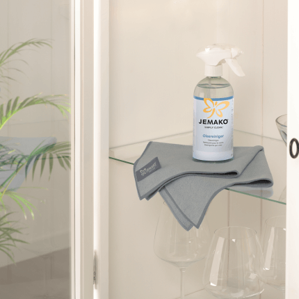 Il Detergente per vetri cancella in un baleno le ditate e i piccoli resti di grasso, regalando a vetri e specchi una lucentezza senza aloni.