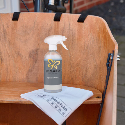 Spruzzare un lieve strato di Speed-Polish sul Panno Speed-Polish e trattare la superficie.