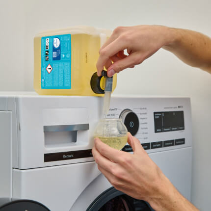 - Erhält die Funktion synthetischer Fasern (z.B. Wasseraufnahme oder Atmungsaktivität von Sport-Bekleidung)