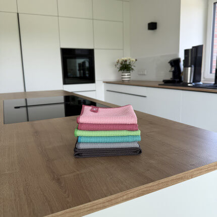 Sa structure unique en nid d’abeille fait de lui le chiffon idéal pour sécher et faire briller la vaisselle et les surfaces non sensibles sans laisser de traces ni de peluches.