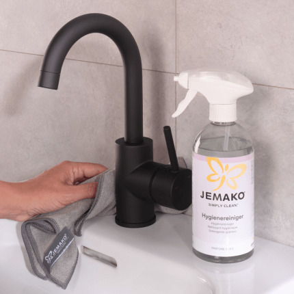 Auf das trockene JEMAKO Profituch sprühen und die zu reinigenden Oberflächen abwischen. Zur Reinigung der Bad-Böden den Hygienereiniger einfach direkt auf die trockene grüne Kurzflor-Bodenfaser sprühen und den Boden wischen. In beiden Fällen ist kein Nachwischen erforderlich.