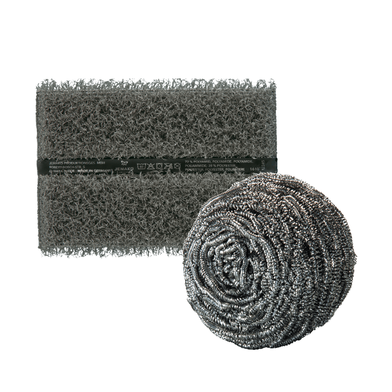 I nostri aiutanti più potenti contro lo sporco ostinato in cucina. La combinazione della nostra collaudata fibra grigia e del potere pulente della spirale inox professionale è in grado di affrontare anche i casi più difficili.