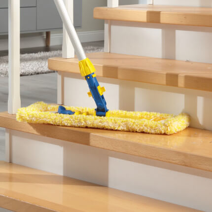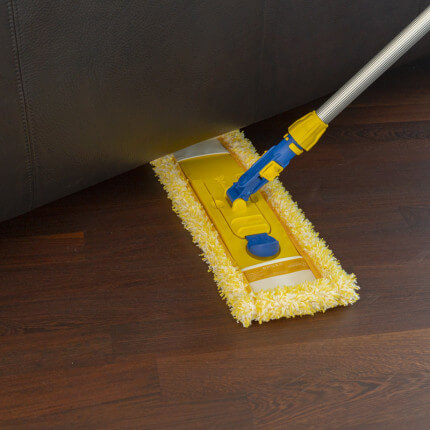 Die gelbe Faser nimmt trocken angewendet ideal Staub und Haare auf. Leicht feucht entfernt sie geringe Verschmutzungen. Sie eignet sich perfekt für alle glatten Böden.