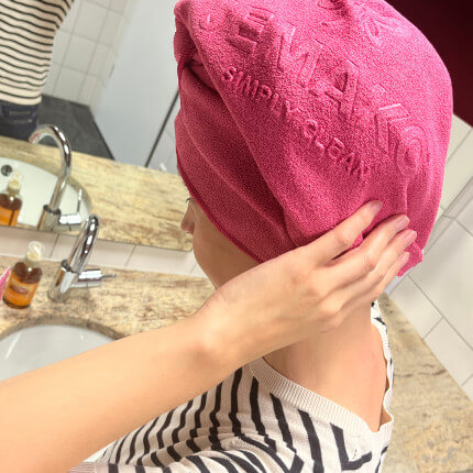 Für die schnelle und extra schonende Trocknung nach dem Haarewaschen. Dank der hervorragenden Wasseraufnahme nimmt die Faser die Feuchtigkeit aus den Haaren besonders schnell auf.