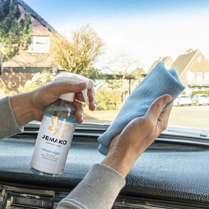 Den Glasreiniger auf ein sauberes Profituch sprühen und die verschmutzten Flächen gleichmässig abwischen. Kein Nachwischen erforderlich.