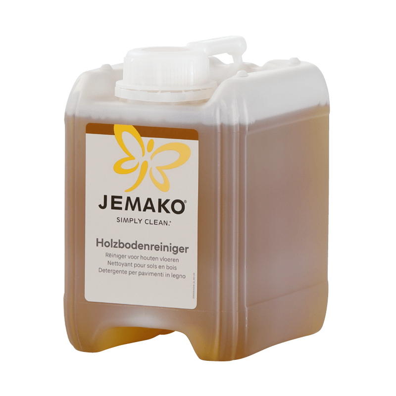 Den Holzboden vor dem Wischen von losem Staub und Schmutz befreien. 50 ml bis 100 ml Holzbodenreiniger in einen Eimer mit 10 l lauwarmem Wasser geben. Anschliessend mit der weissen Faser den Boden feucht wischen. An der Luft trocknen lassen (nicht nachtrocknen).
