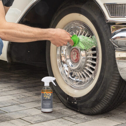 Vaporizzare non diluito sui cerchioni bagnati prima di lavare l’auto. A seconda del grado di sporco, attendere circa 15 minuti. Non lasciare asciugare il prodotto. Quindi lavare i cerchioni con il CleanStick® Plus, 15 cm fibra verde di JEMAKO. Sciacquare con acqua abbondante.