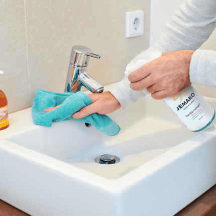 Il nostro detergente sanitario rimuove senza fatica i depositi di calcare e lo sporco dal bagno. Perfetto in combinazione con il panno professionale, il nostro classico per la pulizia delle superfici resistenti.