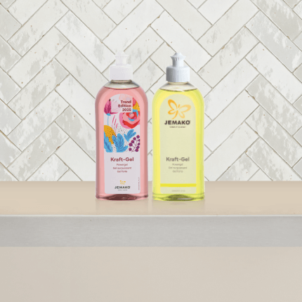 Das Handspülmittel von JEMAKO: Extrastark und hochergiebig gegen Schmutz und Fett.