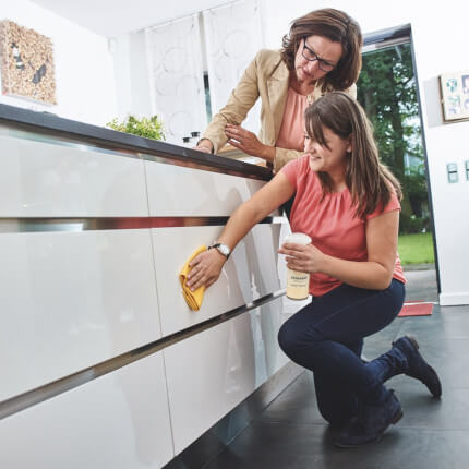 Spruzzare il Dustar®-Cleaner sul Panno Dustar® e pulire la superficie esercitando una lieve pressione.