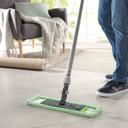 De perfecte combinatie van een Vloerwisser, drie Vloervezels en twee Reinigers voor matte, ruwe vloeren, vloeren die gevoelig zijn voor water en verwijderen van stof en haar.