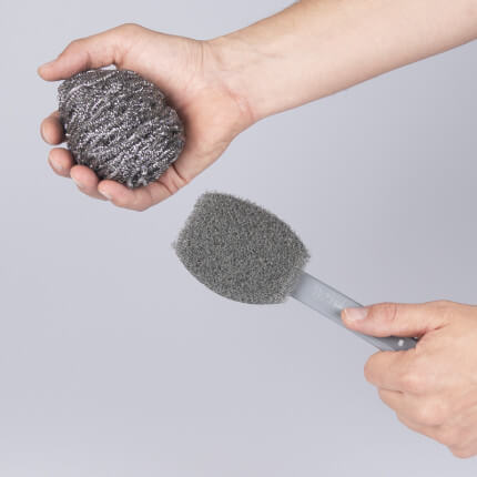 Verkrustungen und Eingebranntes mit leicht kreisenden Bewegungen vom Topfboden oder aus der Pfanne bzw. vom Grillrost lösen. Bei besonders fettigen Verschmutzungen etwas Kraft-Gel auf die Edelstahlspirale geben. Nach Gebrauch gründlich auswaschen.